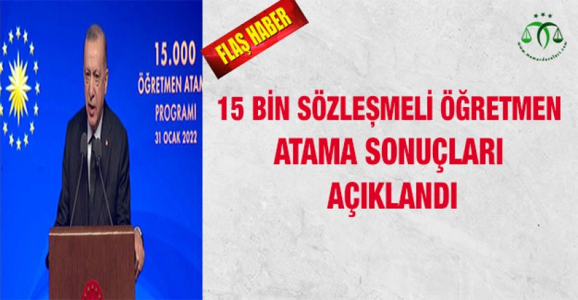 Eylül ayında Cumhurbaşkanı Recep Tayyip Erdoğan tarafından açıklanan 15 bin öğretmen atamasında sona gelindi. Milli Eğitim Bakanlığı tarafından daha önce yayınlanan atama takvimine göre sonuçlar bugün açıklandı.