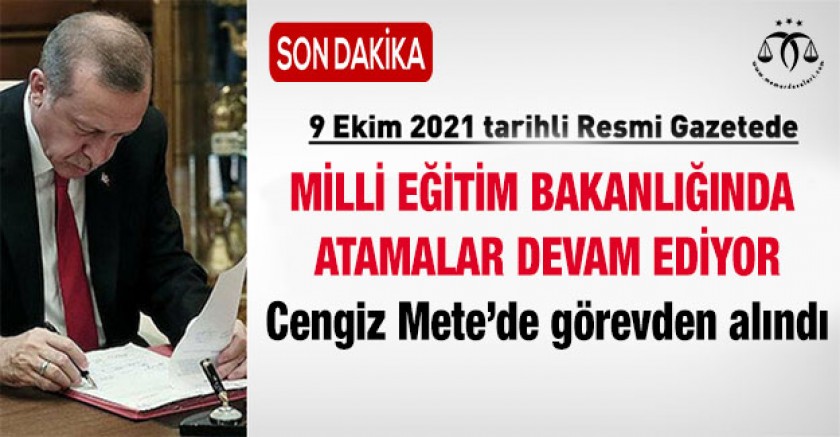 3 sayılı Cumhurbaşkanlığı Kararnamesinin 2, 3 ve 4 üncü maddeleri gereğince, Milli Eğitim Bakanlığı Ortaöğretim Genel Müdürü Cengiz METE görevden alınmış