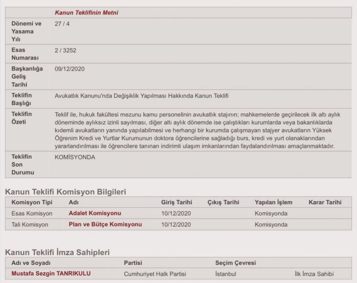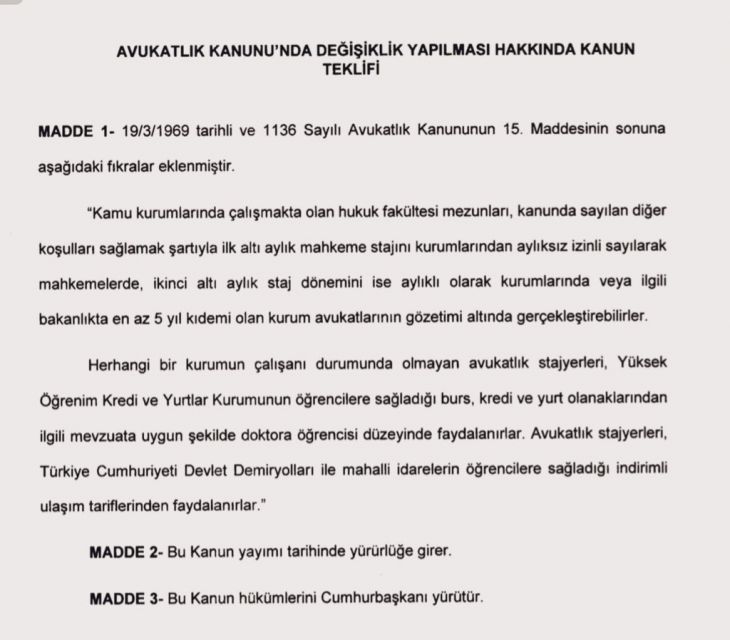 Bu sorun için TBMM'ne kanun teklifi verilmiştir. Kanun teklifi şuan için komisyondadır. Bu kanun teklifi stajyer avukatlarımızı tam olarak rahatlatmasada bir nebze olsun sorunun çözümüne katkı sunacaktır. Kanun teklifinin siyaset üstü düşünülüp yasalaşması bir çok genç hukukçuyu rahatlatacak ve önünü açacaktır.