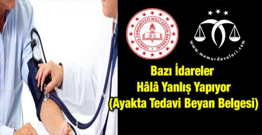 İnternet ortamında, hatta bazı milli eğitim müdürlüklerinin resmi web sitelerinde dahi “Ayakta Tedavi Beyan Belgesi” adı altında sonradan düzenlenen ve doğruluğu bulunmayan belgeler bulunmaktadır. Milli Eğitim Bakanlığı Personel Genel Müdürlüğünün 23/06/2010 tarihli ve 2010/41 sayılı Genelgesinde konu açıklanmış ve beyan belgesinin örneği bizzat Milli Eğitim Bakanlığınca sunulmuştur.