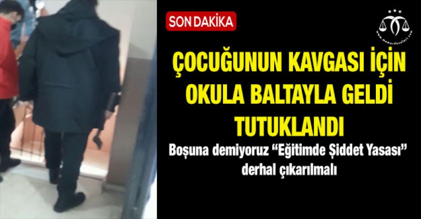 Gaziosmanpaşa'daki Yüksel Kaya Mesleki Eğitim Merkezine baltayla gelen E.Y, çocuğuna bıçak çekildiğini iddia ederek sınıfları gezmiş, kavgaya karışan öğrencileri bulamayınca okuldan ayrılmıştı.