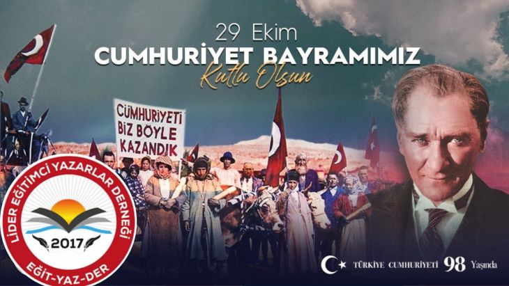 Cumhuriyetimizin kurucusu Gazi Mustafa Kemal Atatürk başta olmak üzere silah arkadaşlarını ve aziz şehitlerimizi rahmetle, kahraman gazilerimizi minnet ve şükranla anıyor; tüm milletimizin Cumhuriyet Bayramını kutluyoruz.