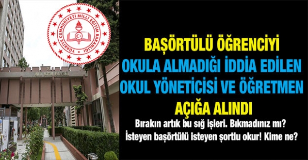 Milli Eğitim Bakanlığından yapılan açıklamada, İzmir Bayraklı'daki bir ilkokulda, bir velinin açıklamalarıyla kamuoyu gündemine yansıyan iddialar üzerine Bakanlık tarafından inceleme/soruşturma başlatıldığı belirtildi. Açıklamada, "İddiaya konu olan okul yöneticisi ve öğretmen açığa alınmıştır. Öğrencimizin eğitim ve öğrenim hakkından yoksun bırakılması durumuna sebebiyet veren ve pedagojik açıdan asla kabul edilemeyecek yaklaşımlar içeren iddialara yönelik başlatılan inceleme/soruşturma süreçleri hassasiyetle sürdürülmektedir." ifadelerine yer verildi.