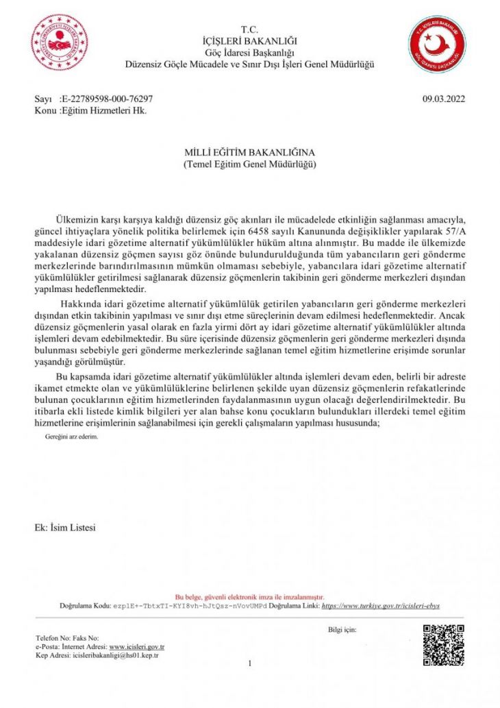 İçişleri Bakanlığının MEB'e gönderdiği yazıda binlerce göçmenin isim listesi de bulunuyor. Listeye göre kısa analiz yapacağız örneğin Karadeniz Bölgemize afganlıların verildiği Gaziantep'te ise Suriyeliler'in verildiği görülüyor. Binlerce olan bu göçmen madem geri gönderilecekse bizim okullarımızda niçin eğitime tabi tutuluyor? sorusu ise kamuoyunda cevap bekleyen bir soru olarak güncelliğini koruyor. Verilen Listeye göre 1476 düzensiz göçmenin 943 tanesi afgan, 405 tanesi suriye uyruklu... Karadeniz Bölgemize afgan uyrukluların dağıldığı, Denizli ilimizde büyük bir göçmen nüfusunun olduğu bunların çoğunun da afgan uyruklu olduğu yine Trabzon'da afganlıların çokça bulunduğu, Karadeniz'de bir ilimizde yeni doğumla beraber 10 afganlının aynı aileden olduğu görülmekte...