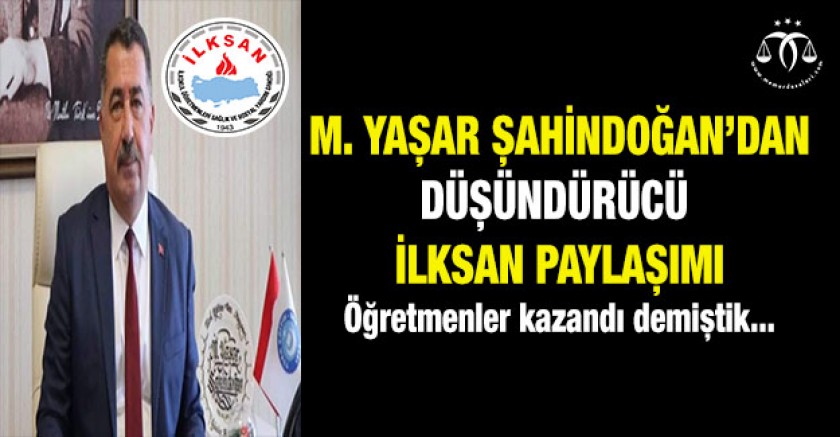 Türk Eğitim Sen Genel Başkan Yardımcısı M. Yaşar Şahindoğan sosyal medya hesabından yaptığı paylaşım ise şöyle: