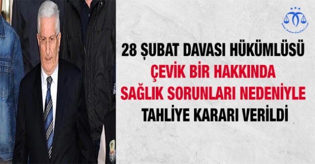 ANKARA 5'inci Ağır Ceza Mahkemesi'nde görülen 28 Şubat davasında, müebbet hapis cezasına çarptırılan dönemin Genelkurmay 2'nci Başkanı Çevik Bir hakkında; sağlık sorunları nedeniyle infazına ara verilmesine karar verildi. Çevik Bir'in tahliye edilmesi bekleniyor.