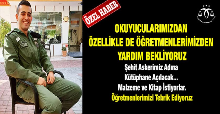 Bu değerli düşünce ve gayret için tüm okuyucularımızdan özellikle de öğretmen arkadaşlarımızdan yardım bekliyoruz. Kütüphane malzemesi, kitap vb. yardımlarınızı Eruh Anadolu İmam Hatip Lisesi'ne gönderirseniz hem çocuklarımıza hem de şehidimizin isminin ölümsüzleşmesine bir nebze de olsa katkı sağlayacağınızı belirtmek isteriz.