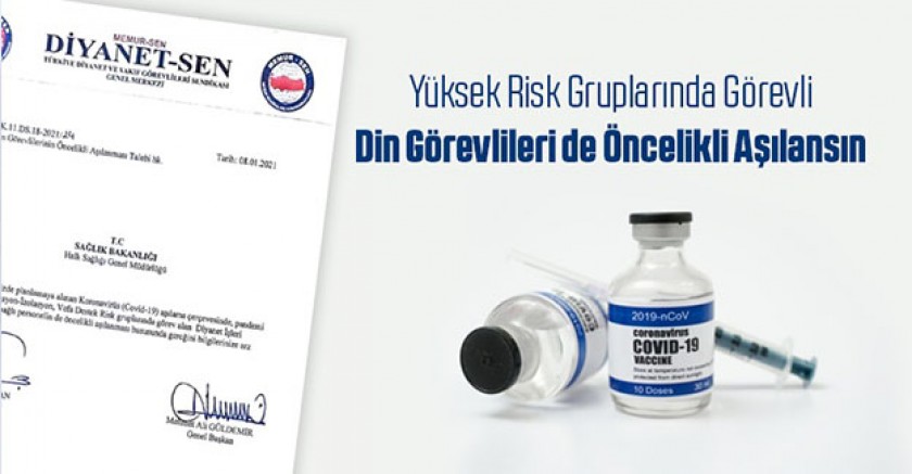 Din görevlilerinin haklarını her platformda dile getiren Diyanet-Sen, Sağlık Bakanlığı’na yazdığı bir dilekçe ile yüksek bulaş riski bulunan Vefa Destek Grupları, Filyasyon-İzolasyon Ekiplerinde görev alan din görevlilerinin de sağlık çalışanları gibi öncelikli aşılanacaklar listesine alınmasını istedi.