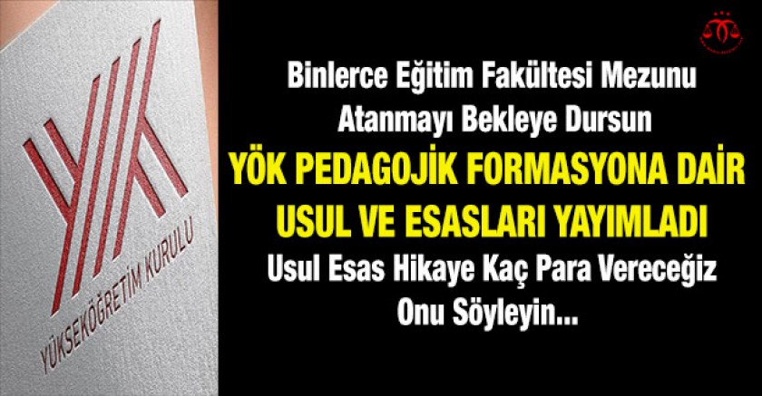 YÖK'ün usul ve saslarını haberimize almayacağız çünkü neredeyse tüm bölüm mezunlarına formasyon veriliyor, AÖF mezunlarına bile... O yüzden isteyen okuyucularımız uzun uzun usul ve esasları okuyabilirler. Bizce usul ve esası YÖK formasyon fiyatını açıklayarak duyurmalı... YÖK'e halk ağzıyla soralım o zaman " emmi formasyon kaç para? "...