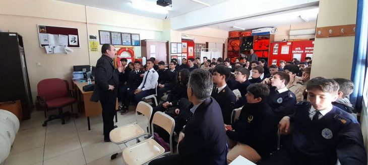 Denizcilik alanında mesleki eğitim veren öncü okullardan İzmir – Konak Nevvar Salih İşgören Eğitim Kampüsü – 4 yerleşkesindeki Mesleki ve Teknik Anadolu Lisesi’nde 17 Mart 2023 Cuma günü gerçekleştirilen söyleşide Prof. Dr. Mustafa Böyükata, “Nitelikli Bilgi Üretiminde Proje Tabanlı Çalışmanın Önemi” konulu sunum yaptı.