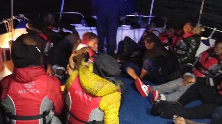 Sahil Güvenlik Komutanlığı ekipleri, iki lastik botta düzensiz göçmenin bulunduğu bilgisi üzerine bölgeye hareket etti.