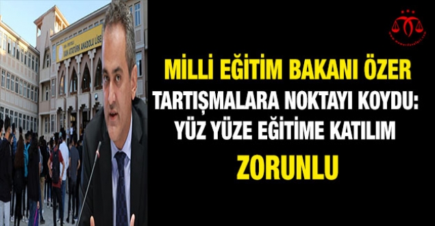 Hürriyet'ten Nuran Çakmakçı'ya konuşan Özer, "Okullarımız tüm kademelerde haftada beş gün ve yüz yüze eğitimle açılıyor. Yüz yüze eğitime katılım zorunlu olacak. Ancak yönetmelikte tanımlı mazereti olanlar, Sağlık Bakanlığı e-nabız sistemindeki kronik hastalıklar listesinde yer alan hastalığa ait raporu olan öğrenciler ve CovId-19 tanılı veya temaslı olan öğrencilerimiz okula gelmeden EBA-TV ve dijital platformlar üzerinden derslerini takip edebilecekler." dedi.