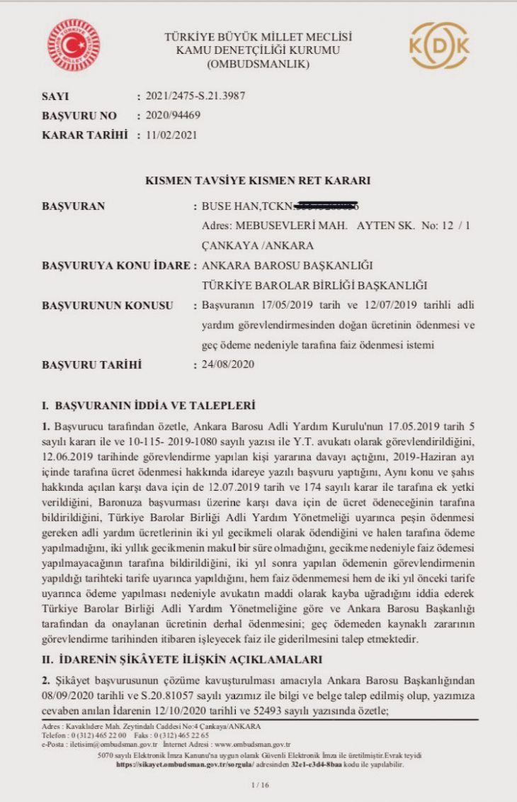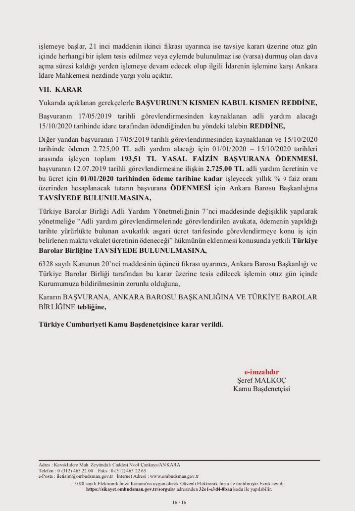 Adli Yardım’ın görev tarihinde değil ödeme tarihinde geçerli Tarife’ye göre avukata ücret ödenmelidir" dedi. İşte o karar