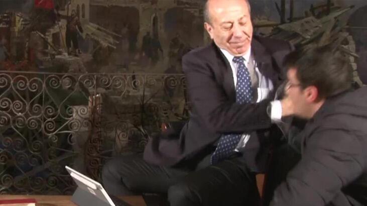 Gazeteci Muharrem Sarıkaya, canlı yayında yaşanan ses problemini çözmeye çalışan İHA muhabiri Ahmet Demir'e tokat attı. Sarıkaya'nın bu çirkin saldırısı tepkilere yol açtı.