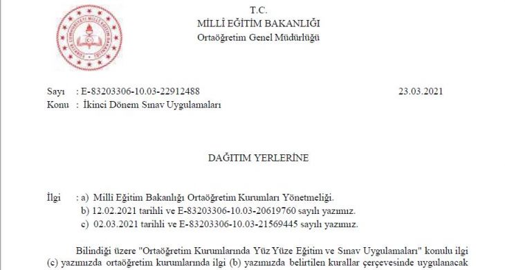 MEB Liselerde 2. Dönem 1. sınavlarını Erteleme kararı aldı. 16 Nisan tarihine kadar sadece 12. sınıfların sınavları yapılacak. 9-10-11.Sınıfların Sınavları ise en erken 3 Mayısta başlayacak şekilde ertelendi. Resmi Yazı 81 İl Valiliğine gönderildi.