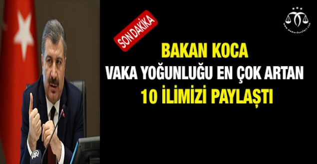Sağlık Bakanı Fahrettin Koca, düzenli olarak açıklanan "Haftalık Vaka Tablosu" verilerini paylaştı. Bakan Koca'nın paylaşımına göre 20- 26 Kasım arasında koronavirüsün en yoğun olarak görüldüğü 10 ilimiz, Osmaniye, Adana, Mersin, Hatay, Kırklareli, Çanakkale, Eskişehir, Burdur, Bilecik ve Edirne oldu.