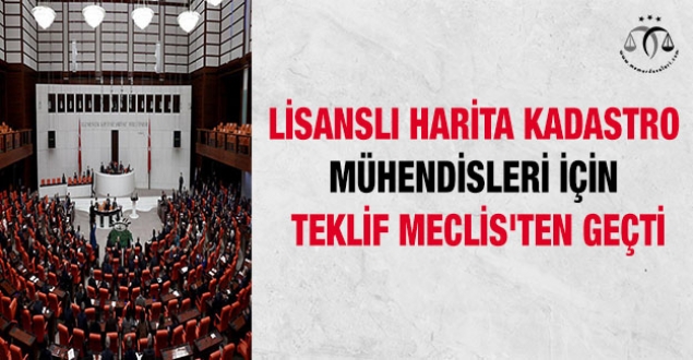 TBMM Genel Kurulu'nda, 'Lisanslı Harita Kadastro Mühendisleri ve Büroları Hakkında Kanunda Değişiklik Yapılmasına Dair Kanun Teklifi' görüşülerek kabul edildi. Teklifle; lisanslı harita ve kadastro mühendislerinin, yazılı sınav şartı kaldırılarak, faaliyetlerini yürüttükleri süre içinde serbest harita ve kadastro mühendisliği ile müşavirlik yapabilmesine imkan tanındı. Lisans belgesi almak için gerekli olan 5 yıl deneyim şartı, 10 yıla çıkartıldı. Ayrıca, lisanslı harita ve kadastro mühendislerinin, her ilde büro açabilmesine imkan tanındı.