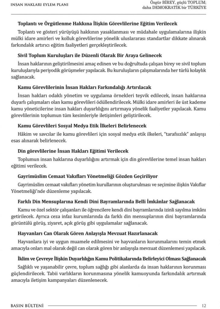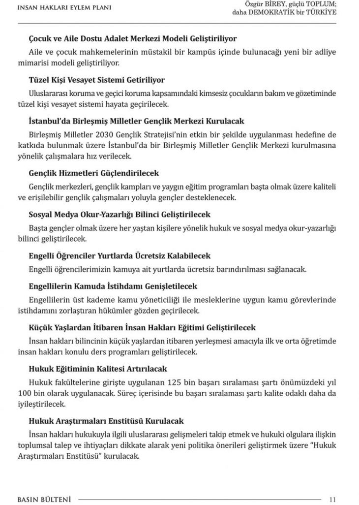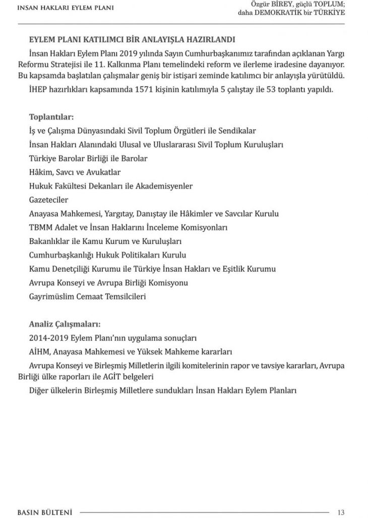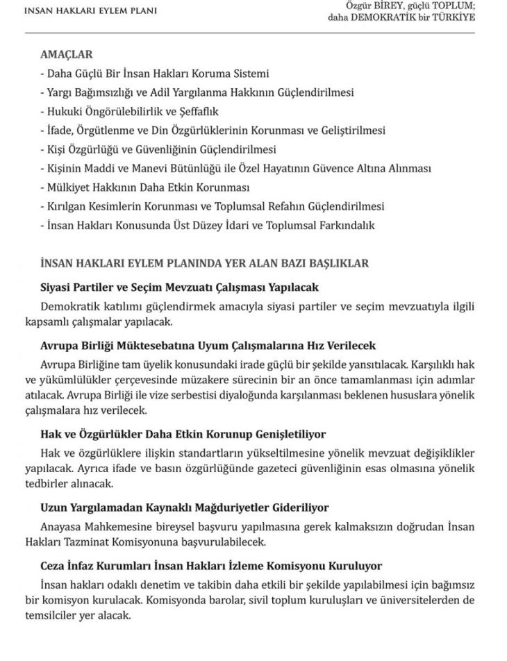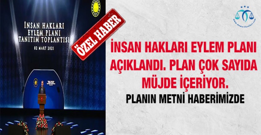 Cumhurbaşkanımız Erdoğan, insan hakları eylem planını açıkladı. Plan 9 amaç, 50 hedef ve 393 faaliyeti içeriyor. Planı haberimizden tam metin olarak okuyabilirsiniz.