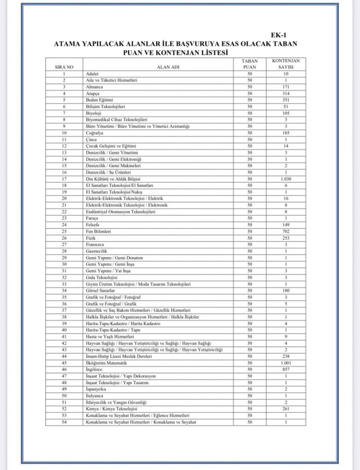 Hangi Branştan Kaç Öğretmen Atanacak?