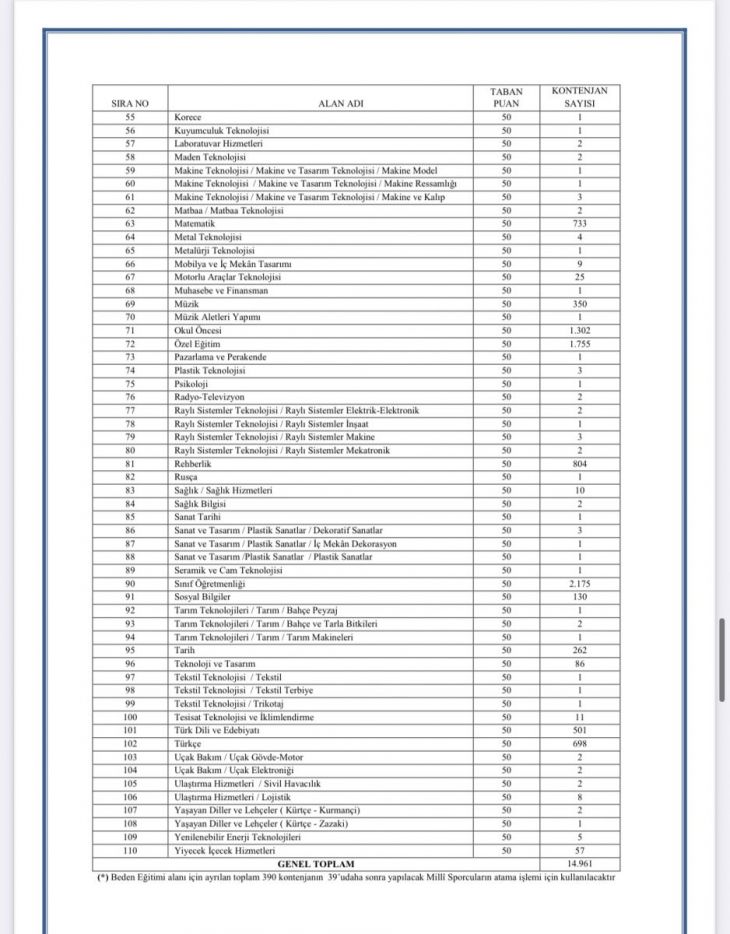 15 bin öğretmen atamasında branş dağılımı belli oldu. İşte tablo halinde branş bazında yapılacak atama sayıları...