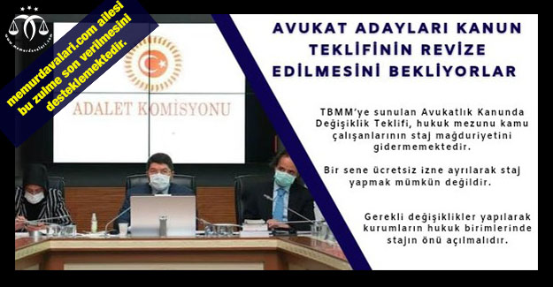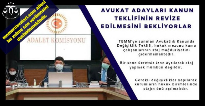Fakat kanun teklifi TBMM'ye verildiğinde; teklifin memur olmayan çalışanlara bu hakkı verirken, memur çalışanlara ise bu hakkı vermediği, ücretsiz izne ayrılma sözünün geçtiği görülmüştür. Öncelikle belirtmek isteriz ki ücretsiz izne ayrılma hakkı şuanda da vardır ve maddi durumu olanlar bundan yararlanabilmektedir. Ya çocuğunu, ailesini geçindirmek için çalışmak zorunda olanlar ne olacaktır? Kısacası sen staj da yapma, aldığın Hukuk Fakültesi diplomanında bir geçerliliği yok vb. demektir. Bu anlayış bugüne kadar maalesef böyle gelmişti fakat bu zulmün son bulacağının müjdesini kamuoyuna açıklayan Cumhurbaşkanımızın sözleri mağdur insanlar tarafından sevinçle karşılanmıştı.
