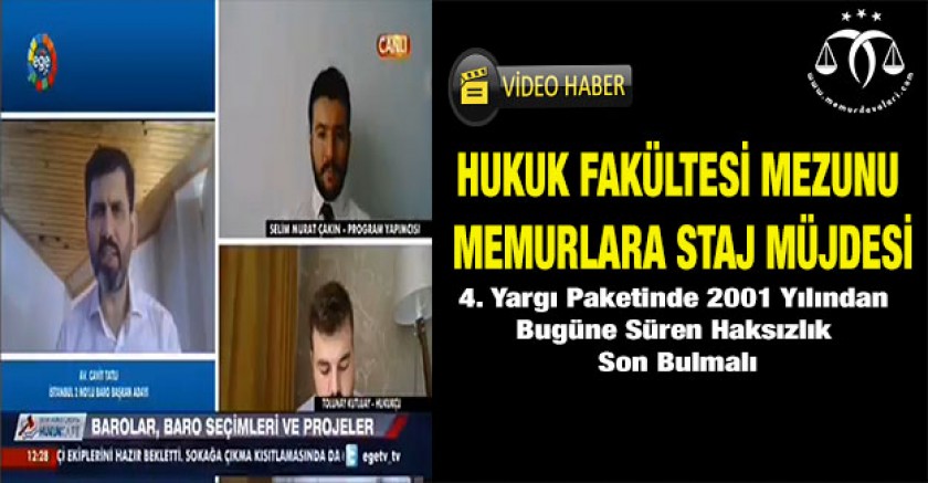 Kamuda çalışan ve çok zorlu bir Hukuk Fakültesi eğitiminin ardından staj imkanı bulamayan Avukat adaylarımıza Ak Parti Bartın Milletvekili Yılmaz TUNÇ tarafından daha önce müjde verilmişti.