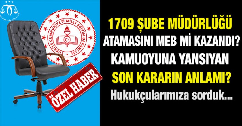 1709 şube müdürlüğü ataması tamamen yok hükmündedir kesin ve nihai kararı ise İdari Dava Mahkemelerinin en üst karar mercii olan Danıştay İdari Dava Daireleri Kurulu vermiştir. İdari davalarda bu kuruldan daha üst bir yargı mercii bulunmamaktadır. Danıştay İDDK’nın 17/02/2020 tarihli ve E: 2020/4, K: 2020/14 sayılı kararıyla son kez ve kesin olarak İPTAL edilmiştir. Kamuoyuna son yansıyan kararda ise bizce gereksiz açılan bir davaya verilen yürütme durdurma kararına yapılan itirazın sonucudur. Yürütme durdurma kararı kaldırılmıştır. Sadece budur ve münferit bir karardır. Asıl olan karar ve ülkemizdeki en üst idari karar organının verdiği karar son ve kesin karardır 1709 şube müdürlüğü ataması hukuksuzdur ve iptal edilmelidir. Bu atamalar atamaların yapıldığı 2014 yılından bugüne hukuksuzdur iptal edilmediği sürece kaç yıl geçerse geçsin hukuksuz olmaya da devam edecektir.