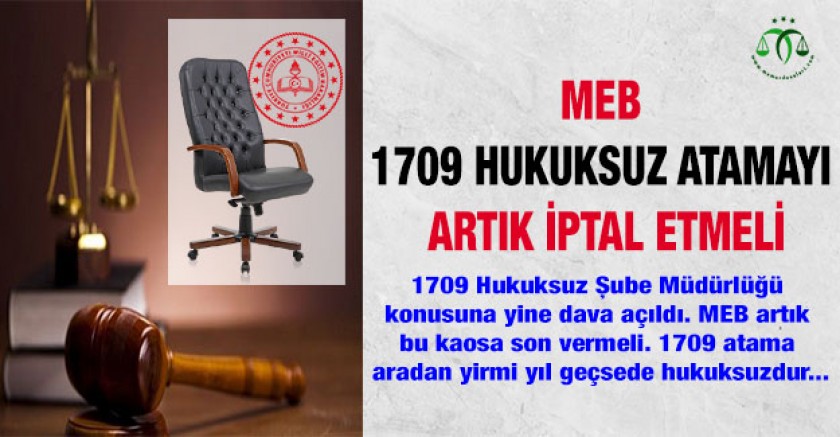 1709'luların hukuken iptali kesinleştiği halde bugüne kadar iptal edilmedi. Bireysel anlamda yüzlerce dava açıldı halen açılmaya devam ediliyor. Yanısıra eğitim sendikaları da bu hukuksuzlukla mücadeleyi sürdürüyor. Bilindiği gibi bu konuda ilk resmi talebi ve davayı açan Türk Eğitim Sen'di. Türk Eğitim Sen yaptığı açıklamada 2014 yılındaki şube müdürlüğü atamalarında üyelerinin haksızlığa uğradığını, mülakat komisyonlarında üyelerinin elendiğini belirtmişti. En son Eğitim Sen 1709'lularla ilgili dava açtığını duyurdu. İşte Eğitim Sen'in o duyurusu: