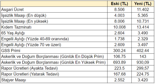Bu gelişmenin ardından gözler asgari ücrete gelen zam oranı kadar değişecek olan maaşlara çevrildi. İşte yeni işsizlik maaşı, GSS primi, kıdem tazminatı ve çok daha fazlasına ait detaylar.