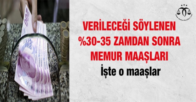 Toplamda yüzde 30 ila 35 arasında olması planlanan zamlar sonrası herkesin merak ettiği en düşük ve en yüksek memur maaşı da netleşti. Yüzde 30'luk zam oranıyla; en düşük memur maaşı; 4 bin 837 liradan, 6 bin 288 liraya yükselecek. En yüksek memur maaşı; 20 bin 104 liradan, 26 bin 135 liraya yükseldi. Yüzde 35'lik zam oranına göre ise; en düşük memur maaşı; 4 bin 837 liradan, 6 bin 529 liraya yükseldi. En yüksek memur maaşı; 20 bin 104 liradan, 27 bin 140 liraya yükseldi.