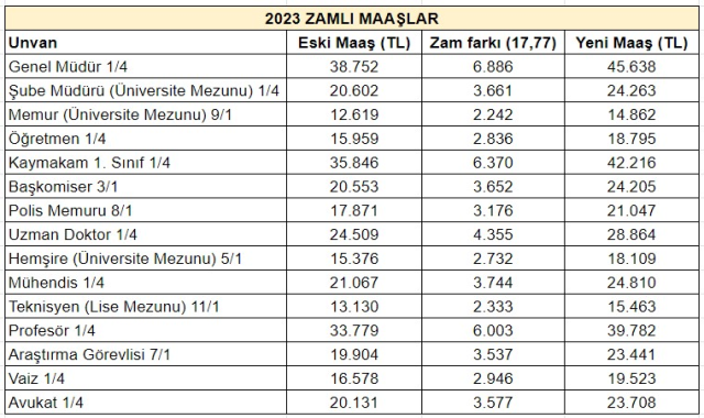 6 aylık enflasyon verisine göre yeni maaş tablosu şu şekilde olacak: