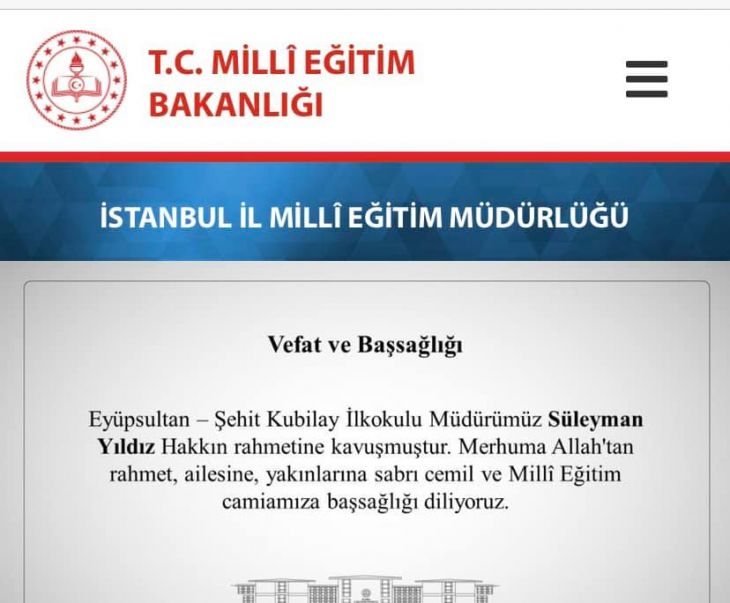 Evet, bugün koronavirüs nedeniyle kendisini kaybettik. Eğitim camiası temiz, çalışkan ve her şeyden önce alnı açık bir eğitimcisini kaybetti. İstanbul Milli Eğitim Müdürlüğü kendisi için bir taziye yayınladı. Bizlerde değerli eğitimcimize Allah’tan Rahmet; ailesine ve sevenlerine başsağlığı diliyoruz.