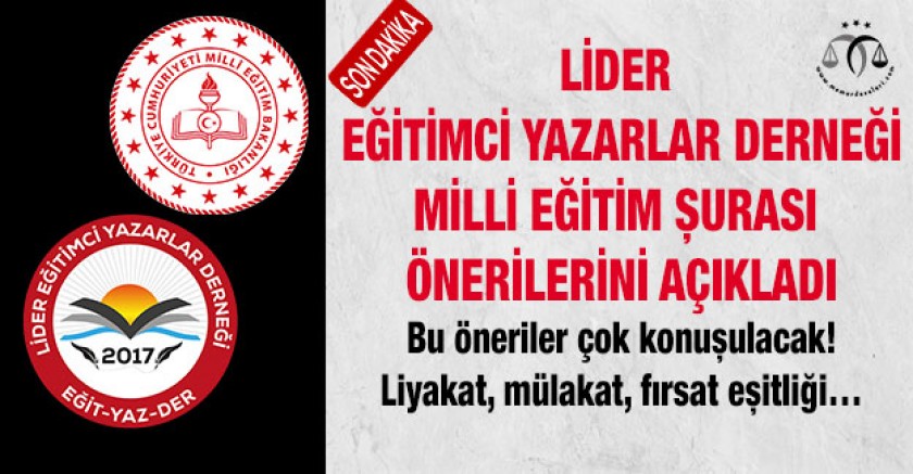“Eğitimde Fırsat Eşitliği” başlığı ile 1-3 Aralık 2021 tarihleri arasında Ankara'da toplanacak olan 20. Mili Eğitim Şurası için şu günlerde toplumun her kesimi görüş ve önerilerini Bakanlığa ve kamuoyuna sunmaktadır. Bizler de eğitimin içinde sorunları bizzat yaşayan ve alanda tespit eden Lider Eğitimci Yazarlar Derneği olarak eğitimimize katkısı olması temennisiyle bu konudaki görüş ve önerilerimizi aşağıdaki şekilde yetkililerin ve kamuoyunun ilgisine sunuyoruz: