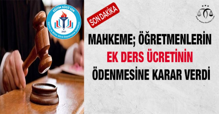 Eğitim Gücü Sen Bilim ve Sanat Merkezi (BİLSEM) öğrenci seçme ve yerleştirme işlemlerinde BNV Sözel Olmayan Test Uygulayıcısı olarak günde 2 oturum ve 4 uygulama için görevlendirilen ve ilk aşama sınavlarına ilişkin ek ders ücretleri ödenen ancak ikinci aşama sınavına dair uygulamalara ilişkin ek ders ücretleri ödenmeyen eğitim çalışanının, bu görevlendirmelere karşılık tarafına ek ders ücret ödemesinin yapılması istemiyle 24/05/2022 tarihinde yapılan başvurunun reddine ilişkin olarak; Samsun Valiliği İl Milli Eğitim Müdürlüğü'nce tesis edilen 13/06/2022 tarih ve E:32736299 sayılı işleminin; haksız ve hukuka aykırı olduğu ileri sürülerek iptali ile yoksun kaldığı parasal hakların yasal faizi ile birlikte ödenmesine karar verilmesi talebiyle açılan davayı kazandı.