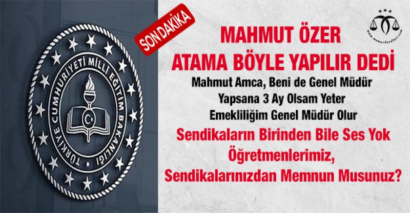 Öğrenciler bile Mahmut Özer’den genel müdürlük, daire başkanlığı bekliyor… İşin en ilginç yanı ise öğretmenlerin üyesi olduğu sendikaların birinden bile ses yok, dava yok, itiraz yok… İlginç mi? Bizce değil… Bakın ne atamalar oluyor tek tek öğrenebildiklerimizi yazalım.