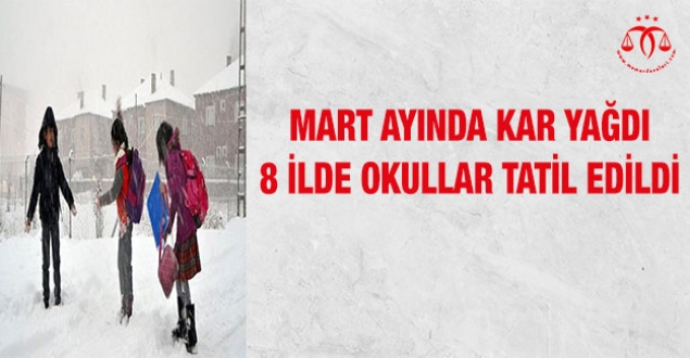 Türkiye, mart ayıyla birlikte bahar mevsimine girdi. Ancak bazı bölgelerde kar yağışı etkisini gösterdi. Yoğun kar yağışı nedeniyle 8 ilde okullar tatil edildi.