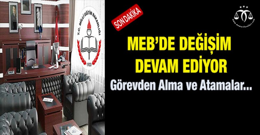 Temel Eğitim Genel Müdürlüğünde daire başkanlığı görevlerinde bulunan Özel Büro Müdürlüğü / Daire Başkanı Ekrem Cinoğlu, Araştırma- Geliştirme ve Projeler Daire Başkanı Ayşe Kula, Öğrenci İşleri ve Sosyal Etkinlikler Daire Başkanı Hasan Atalay, Meslekî ve Teknik Eğitim Genel Müdürlüğünde, Eğitim Ortamlarının ve Öğrenme Süreçlerinin Geliştirilmesi Daire Başkanı Ertuğrul Geçkil,Programlar ve Öğretim Materyalleri Daire Başkanı Recep Altın görevden alınmıştır.