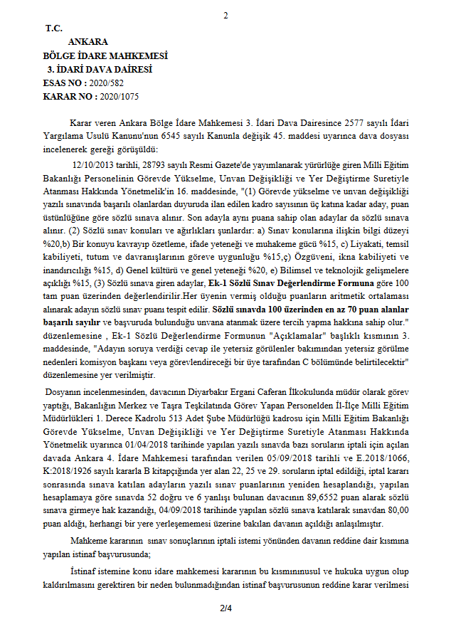 MEB ŞUBE MÜDÜRLÜĞÜ İÇİN YAPILAN SÖZLÜ SINAVA YARGI FRENİ