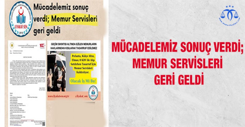Mücadelemiz sonucu Büyükşehirlerde görev yapan memurlara sunulan ulaşım servislerinin tasarruf tedbirleri kapsamı dışına çıkarılarak tekrar servis hizmeti verileceği Cumhurbaşkanlığı'nın bila tarih ve 254320 sayılı resmi yazısıyla duyurulmuştur. Tasarruf vb. adlar altında eğitim ve bilim emekçilerinin haklarından yapılacak kesintilerin karşısında olduğumuzu kamuoyuna saygıyla ilan ederiz.