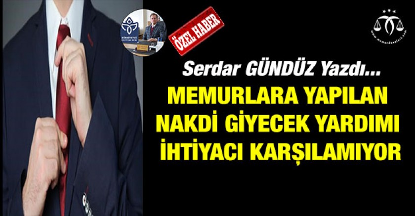 Memurlara Yapılacak Giyecek Yardımı Yönetmeliğinin 1 sayılı cetveli kadro unvanı bazında değil görev bazında düzenlenmelidir. Örneğin Büro personeli olarak ofis ortamında çalışanlara (Yard. Hizmetli, Memur, VHKİ, Şef, Şube Müdürü vb.) Takım elbise, gömlek, kravat, ayakkabı, kemer, Palto veya Manto alımına yetecek nakdi giyecek yardımı yapılmadır.