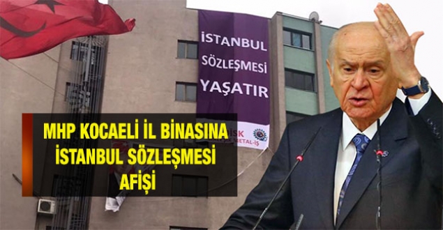 Kocaeli Barış Gazetesi'nin haberine göre, DİSK'e bağlı Türk Metal Sendikası'nın MHP Kocaeli İl Binası'na "İstanbul Sözleşmesi Yaşatır" sloganlı afişi astığı görüldü.