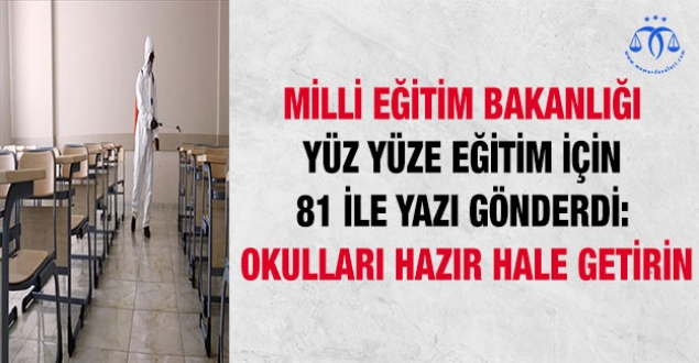 Milli Eğitim Bakanlığı (MEB) Destek Hizmetleri Genel Müdürlüğü tarafından, 81 milli eğitim müdürlüğüne gönderilen yazıya göre, okullar eğitim ve öğretime hazır hale getirilecek.