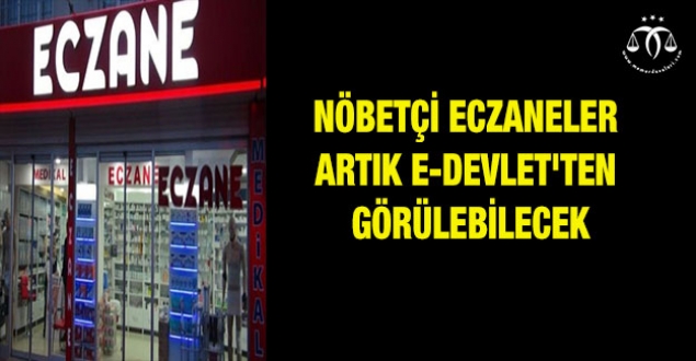 Türk Eczacıları Birliği (TEB) tarafından bildirilen ve il sağlık müdürlüklerince onaylanan nöbetçi eczane bilgileri, e-Devlet'teki sayfada yer alacak. Vatandaşlar, burada nöbetçi eczanelerin adres bilgilerinin yanı sıra konum bilgilerine de kolaylıkla erişebilecek.