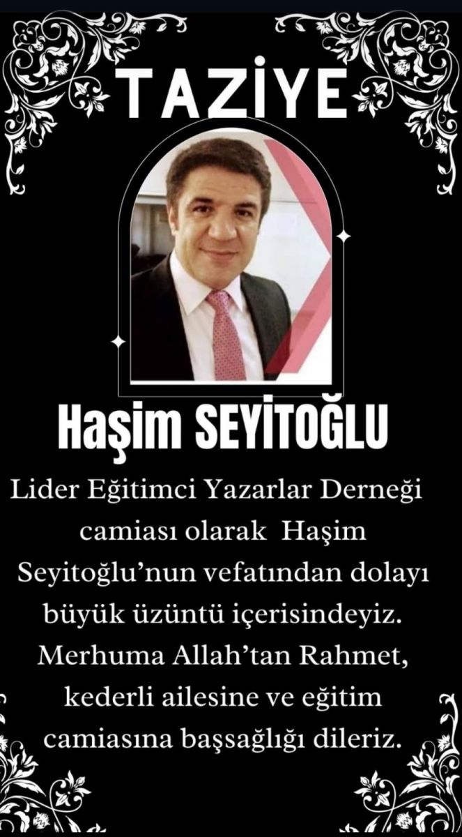 Eğitimci Yazarlar Derneği Mersin İl temsilciliği görevinde de bulunan sevgili dostumuzu kaybetmiş olmanın derin üzüntüsünü yaşıyoruz. Merhuma Allah’tan rahmet, ailesine ve yakınlarına başsağlığı dileriz.