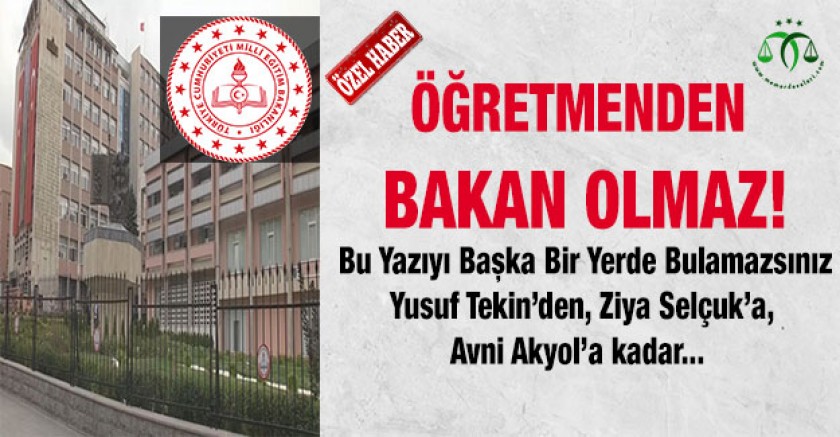 Cumhuriyet tarihimiz boyunca vekâletler hariç 64 kişi Milli Eğitim Bakanlığı yapmıştır. Öğretmenlerimizin en üst amiri olan bakanların meslek profillerinin çeşitliliği insanı şaşırtmakta; bu meslekler içerisinde neler yok ki: Mühendisler, tıp doktorları, öğretim üyeleri, valiler, avukatlar, subaylar, emniyet müdürleri, büyükelçiler, ziraatçılar, akademisyenler v.b. şeklinde liste uzayıp gitmekte.