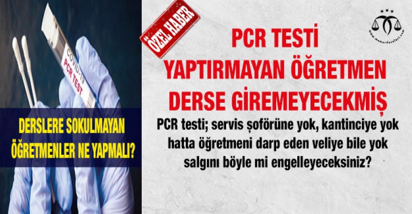 Milli Eğitim Bakanlığının 30 Eylül tarihinden itibaren PCR testi yaptırmayan öğretmenlerin derslere alınmamasını istediği kamuoyunda konuşuluyor. İl müdürlükleri ve okul/kurum müdürlüklerine gönderilen mesajla öğretmenlerin son kez uyarılması, buna rağmen PCR testi yaptırmayanların 30 Eylül tarihinden itibaren derslere alınmaması istenmiş.