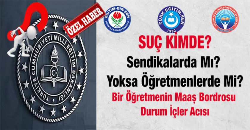 Fakat sendikalara suç bulup onları suçlamadan önce öğretmenlerimizin şapkalarını önlerine koyup düşünmeleri gerekmez mi? Neyse sizler bordroyu inceleyin ve karar verin suçlu kim?