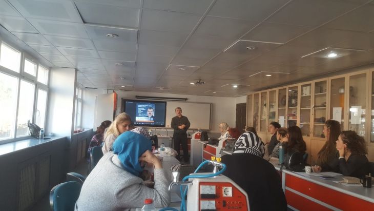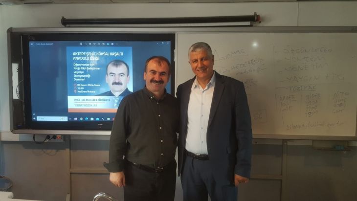 Fen ve sosyal alanlarda farklı branşlardan öğretmenin katıldığı ve 08 Kasım 2024 Cuma günü gerçekleştirilen eğitim seminerinde hem TÜBİTAK programlarını tanıtıp hem de proje döngüsü yönetimi ile ilgili bilgiler veren Prof. Dr. Mustafa Böyükata, eğitimden yararlanan katılımcılara küçük gruplar halinde atölye uygulaması da yaptırdı. Grupları beyin fırtınası yoluyla yönlendirerek proje fikri geliştirme çalışması yaptırarıp, üretilen proje fikirleri için özet hazırlamalarını sağladı.