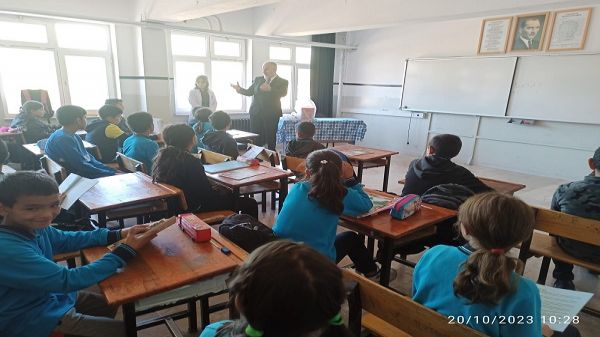 Pazarören’deki etkinlikte, çevre köylerden taşımalı eğitim için gelen çocukları da Pazarören Uygulama İlkokulu ve Ortaokulu’ndaki sınıflarında ziyaret eden Prof. Dr. Mustafa Böyükata, onları ilgi ve heves duydukları sanat ve spor dallarında da güzel işler yapmaya motive edecek tatlı söyleşiler gerçekleştirdi.