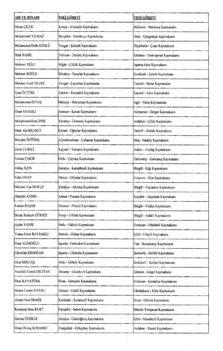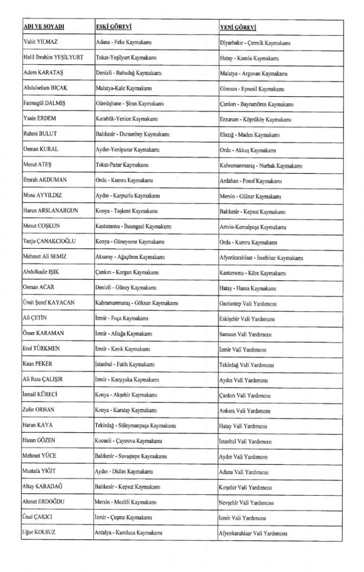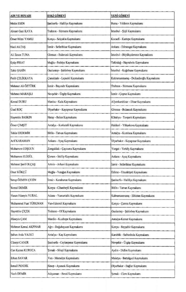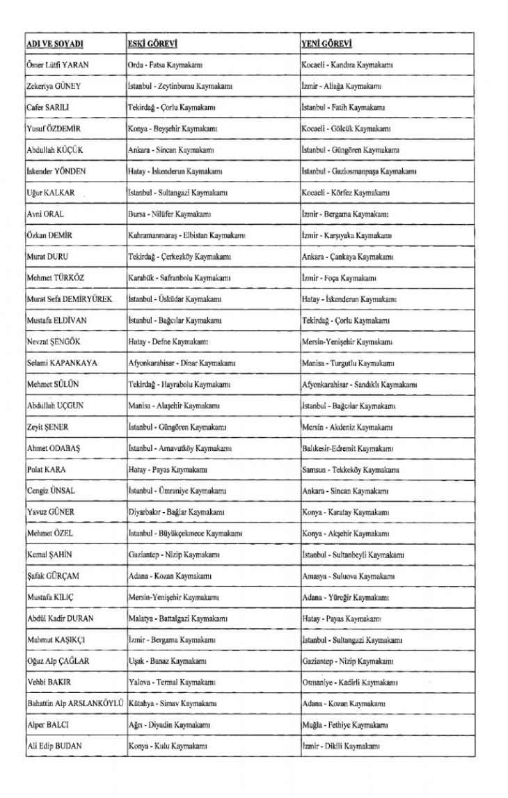 İstanbul'da 12, Ankara'da 4, İzmir'de ise 10 kaymakamın görev yerleri değiştirilirken, kayyumluk görevi de icra eden kaymakamlardan 12'si farklı görevlere atandı, yerlerine yeni kaymakamların ataması yapıldı.